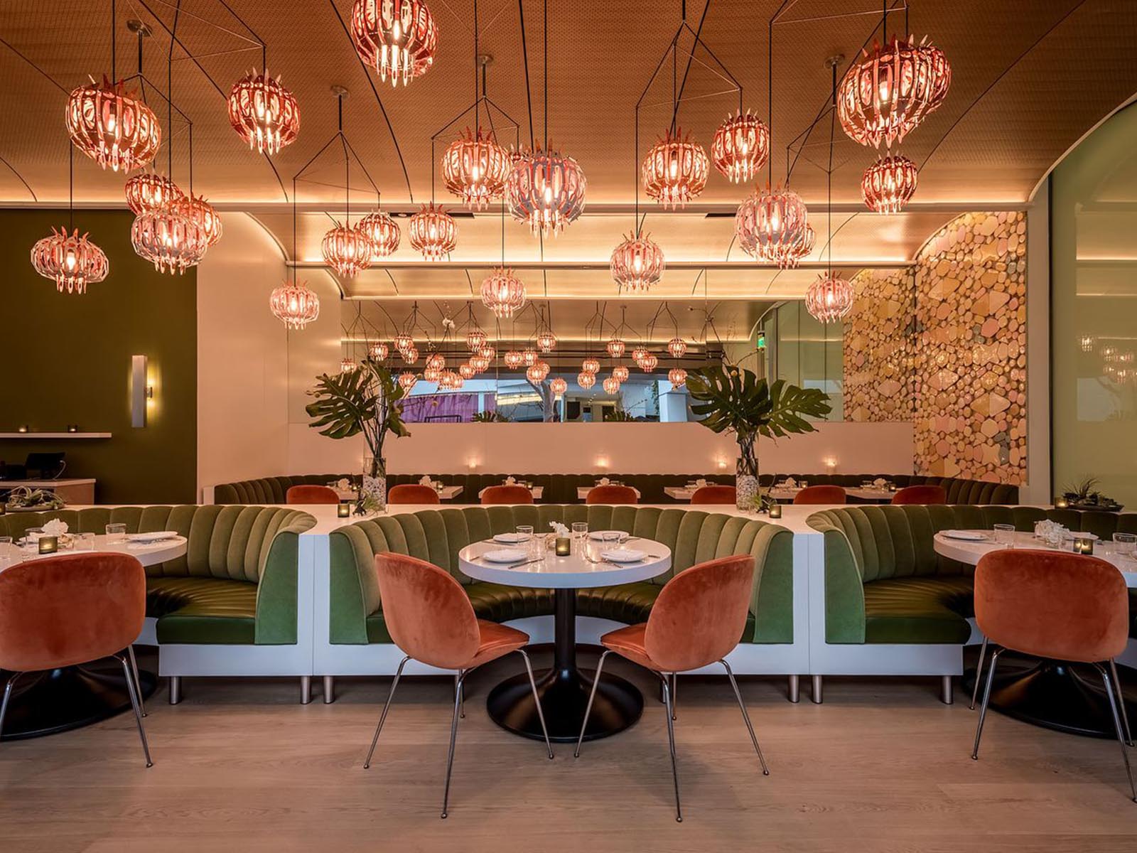 Located within the Hammer Museum in Westwood, this soulful LA eatery blends elevated cooking with contemporary So-Cal ambiance. For the circular banquettes, Fettle Design chose our Renaissance Caesar article to complement the restaurant’s warm and whimsical color palette.