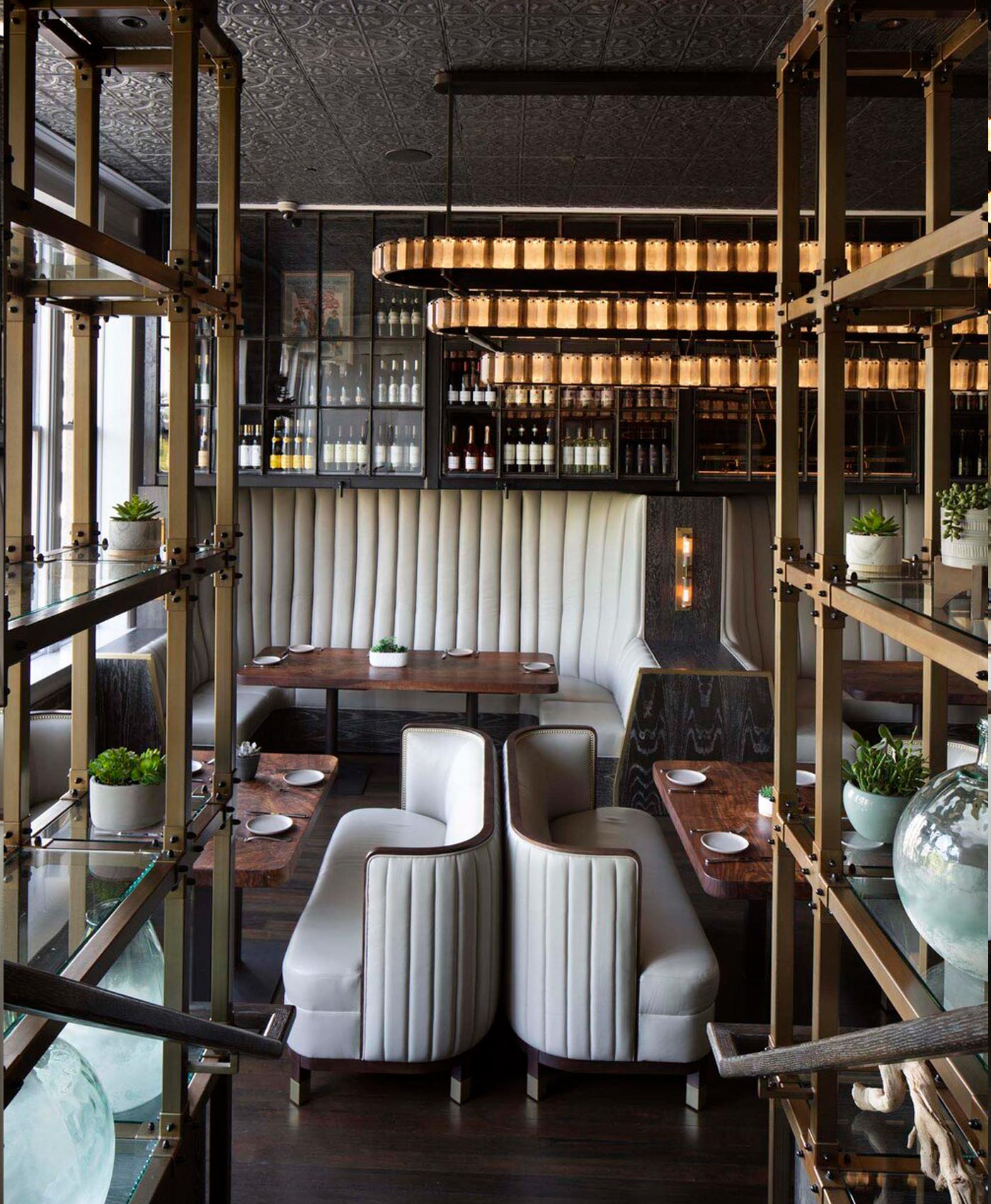 Described as a labor of love, this tri-level bar and restaurant is a revival of one of Napa’s most historic buildings. Booths, banquettes and barstools upholstered in Cityscape Fawn provide airy contrast to wooden fixtures, brick walls and brass fittings found throughout the space.