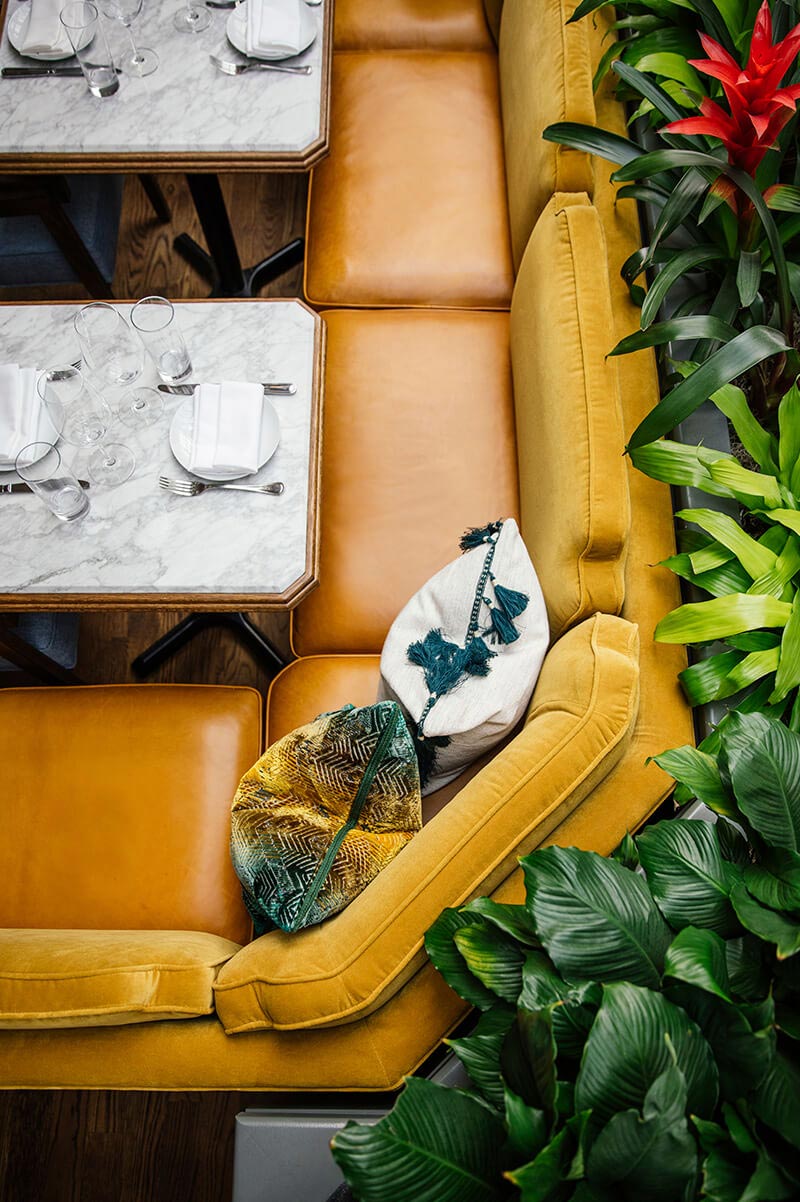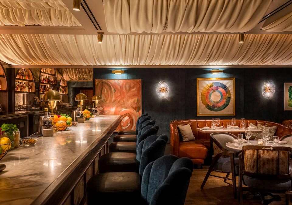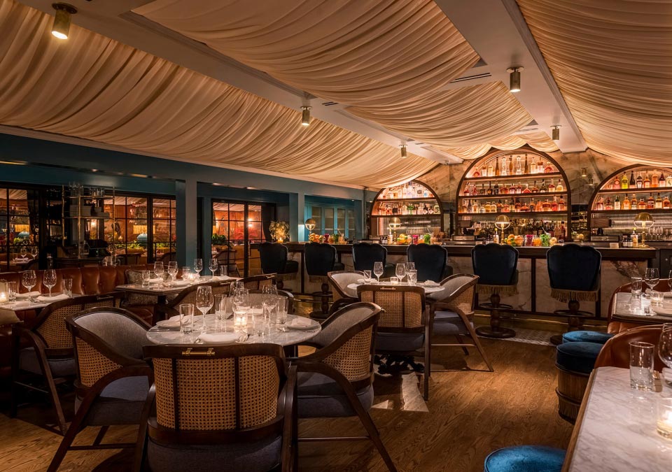 Tucked away in West Hollywood's Restaurant Row, sits the incredibly stylish Olivetta Restaurant. Designed to provide a fabulous dining experience within a high-end restaurant atmosphere, that also includes late-night cocktails and music, it has become a Melrose Avenue staple. Decorated with custom-made gold-leaf wallpaper as well as furniture throughout upholstered in Tiger Leather’s own Manhattan Emerald and Sierra Saddle, Olivetta does not disappoint.