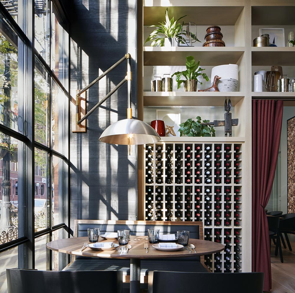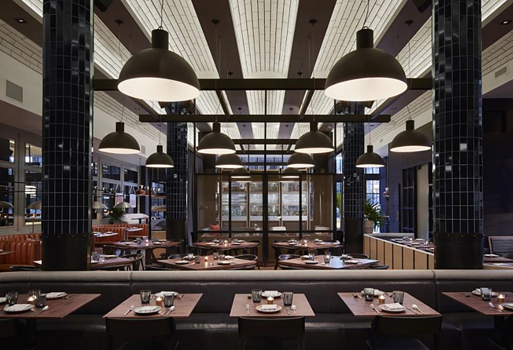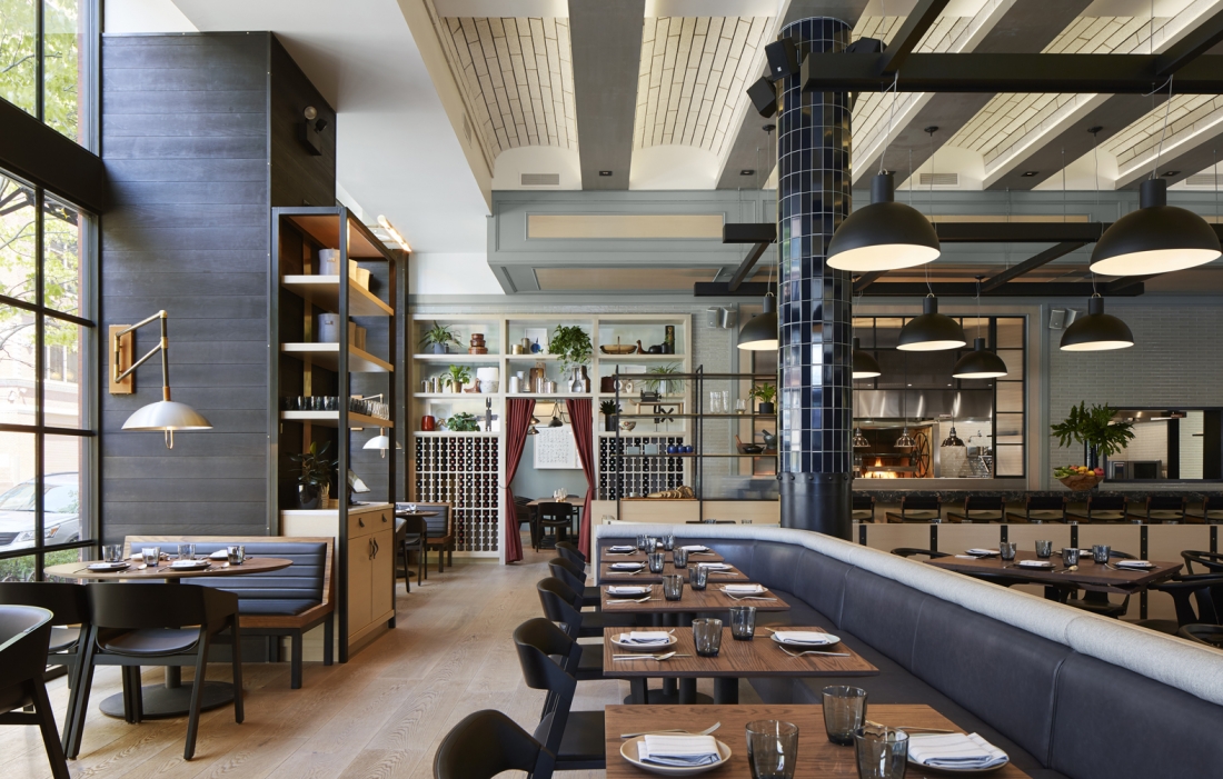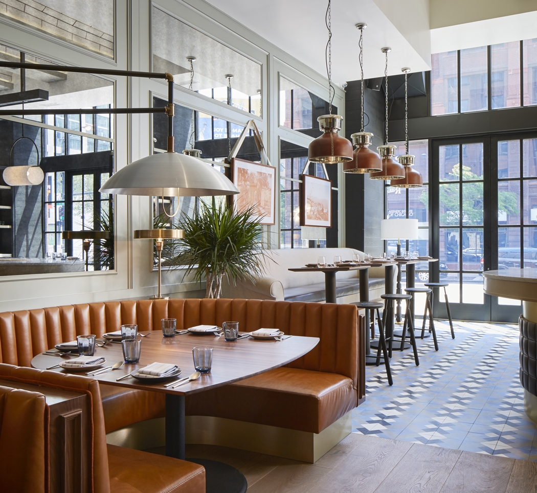 This beloved Chicago brasserie is inspired by street food and decorated in mid-century modern. Design elements include a barrel-vaulted ceiling, antique mirrors, colorful tiles, and leather-quilted upholstery in our Old Town Wheat, Kismet Oxford, and Yukon Basin articles, just to name a few.