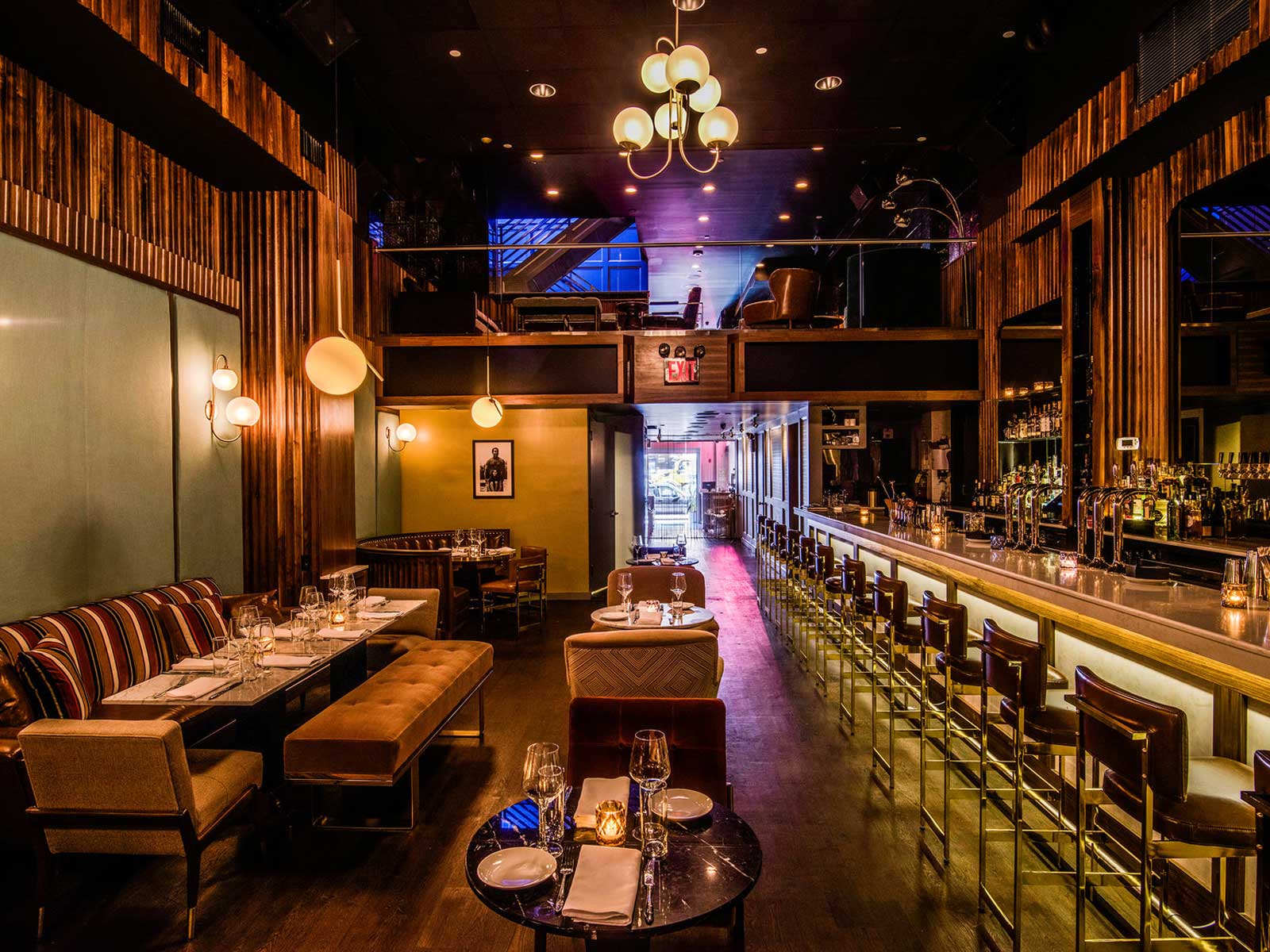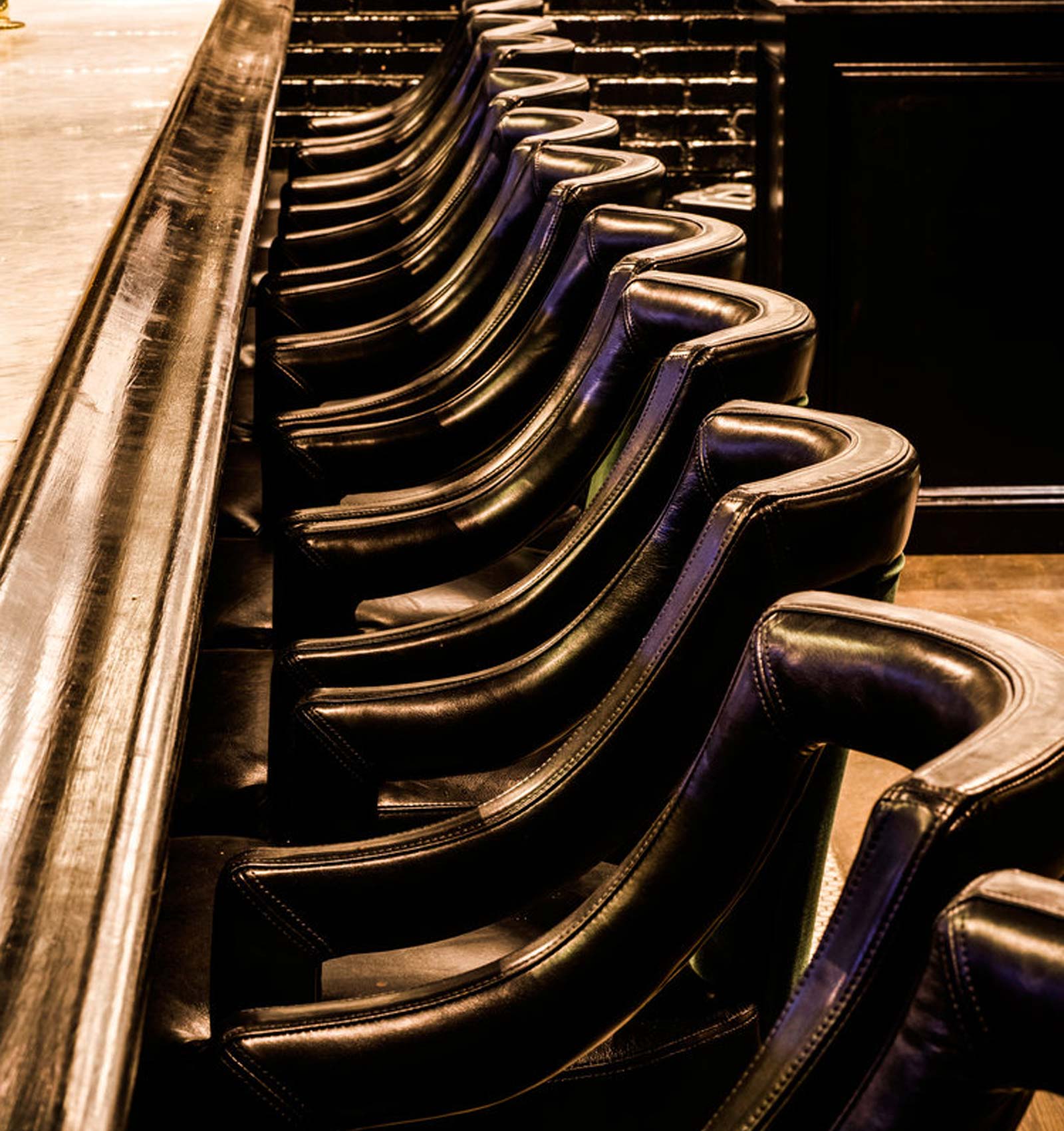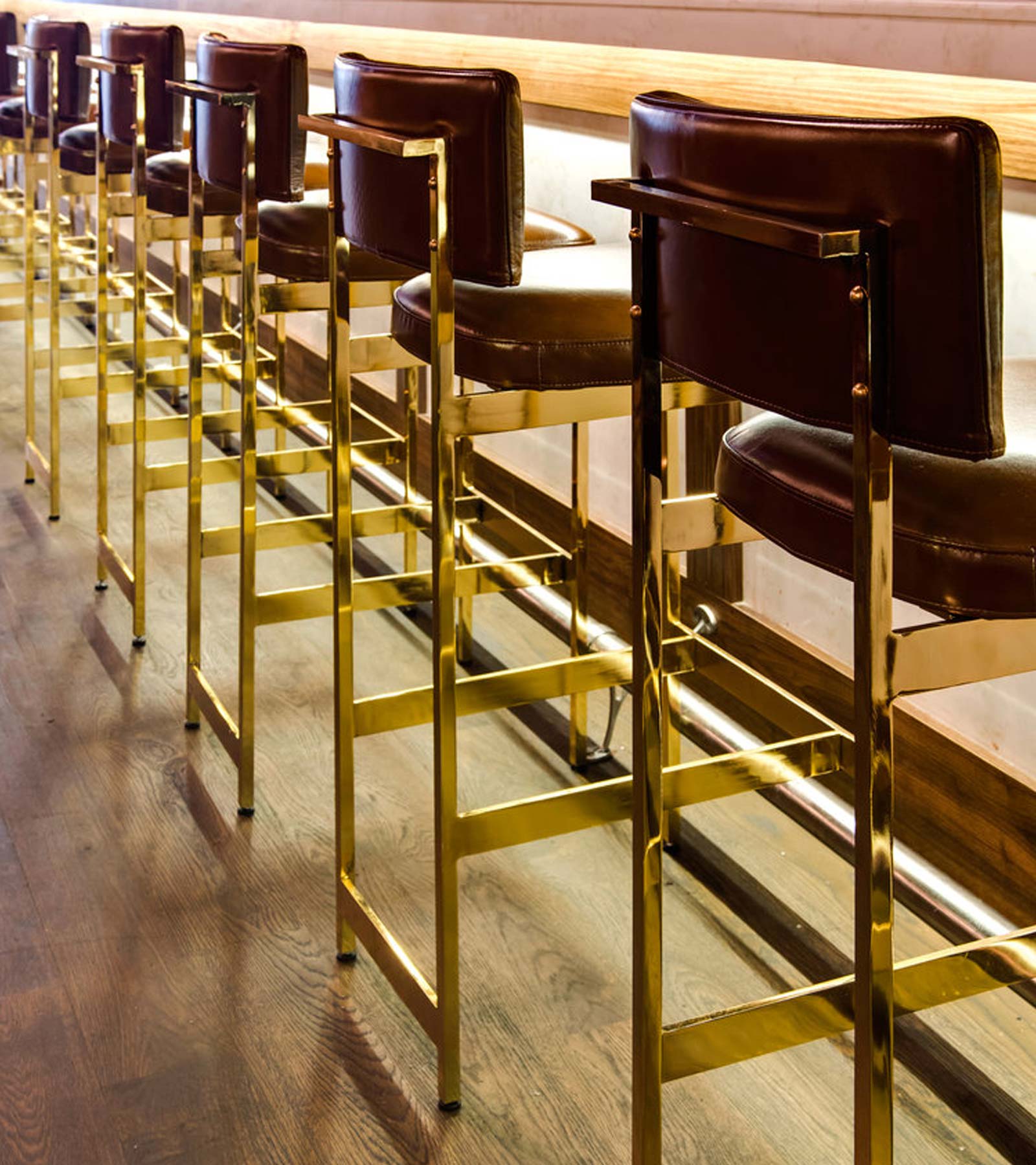 The 70s are on full display at The Vnyl, a multi-purpose space which feels residential while still having the functionality of a restaurant, event space and club. Colorful splashes abound, offset by leather-clad chairs, banquettes and barstools upholstered in fine Italian leather by Tiger.